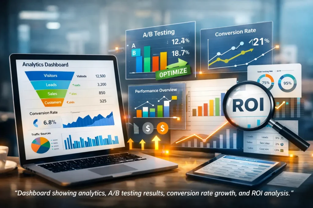 Post-launch, we analyze performance data and optimize elements such as headlines, layouts, CTAs, and flow to improve conversion rates over time.